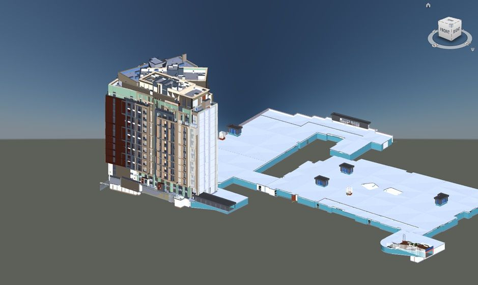 Model Point transmits the correct location along the X, Y, Z axis and rotation angle for each building, section, and construction site.